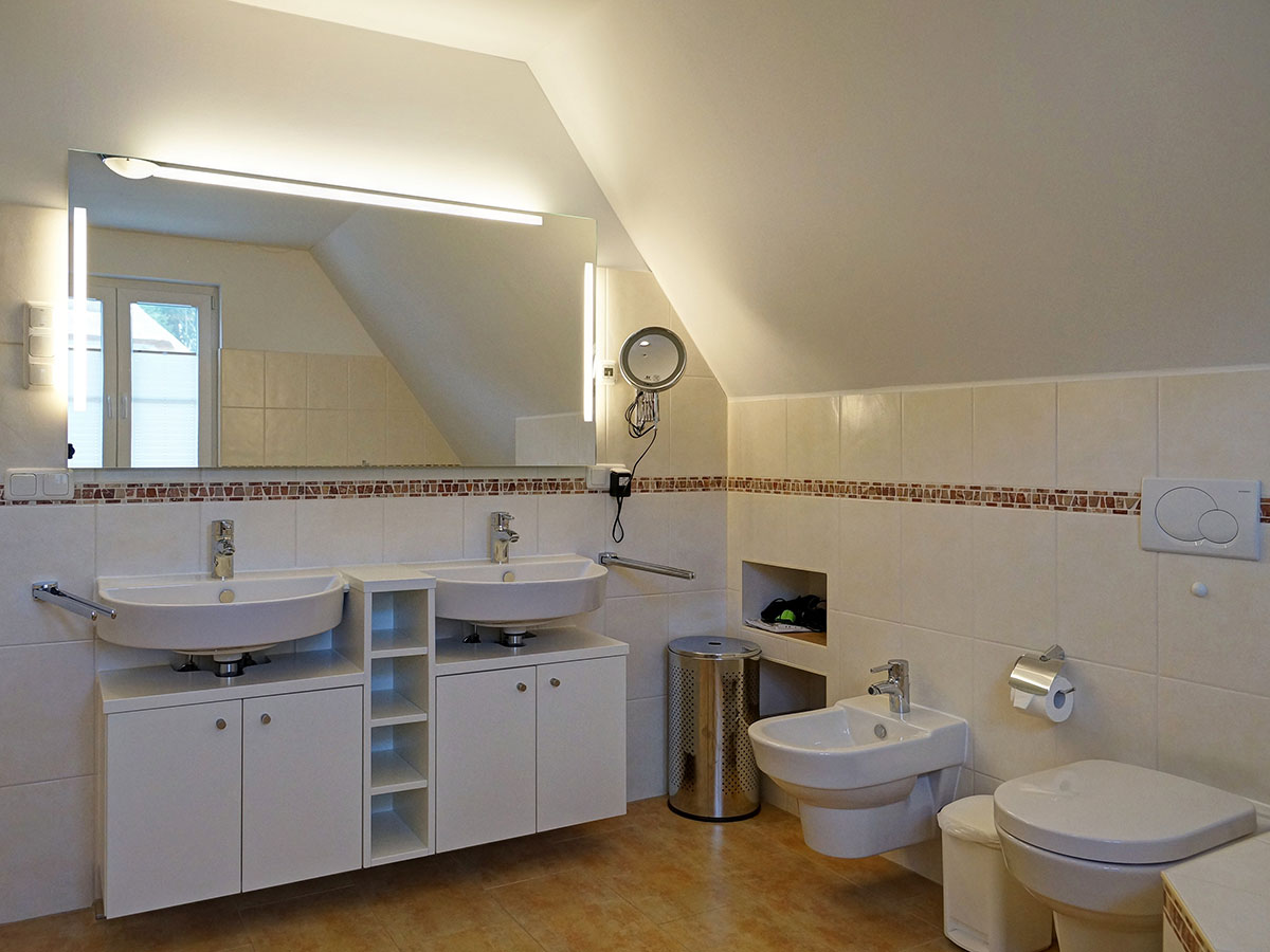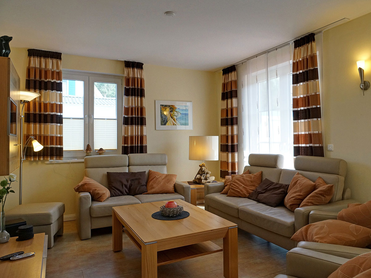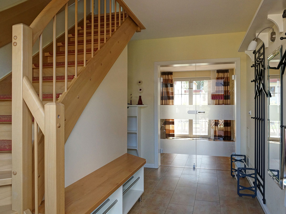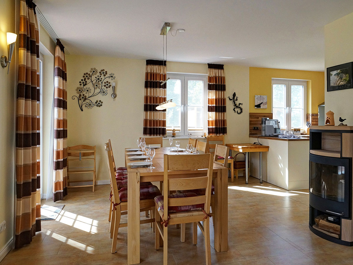 Das wunderschöne, großzügige Reetdachhaus "Amy" liegt nahe dem Ostseestrand in der neu angelegten Ferienhaus-Siedlung "Ostseepark Glowe". Es hat ein Wohnfläche von ca. 150 m² und ist modern und familienfreundlich eingerichtet. Im komplett gefliesten Erdgeschoss befindet sich der großzügige Wohn- und Essbereich mit offener Küche und zwei angrenzenden Terrassen. Das Obergeschoss verfügt über drei Schlafzimmer mit insgesamt sechs Betten für Erwachsene und eine zusätzliche Aufbettung für Kleinkinder. Im ausgebauten Dachgeschoss befindet sich ein viertes Schlafzimmer mit zwei weiteren Betten und einem Gäste-WC. Zwei Duschbäder eines mit Badewanne stehen Ihnen während ihres Aufenthaltes im Erd- und Obergeschoss zur Verfügung. Drei Pkw-Stellplätze befinden sich direkt auf dem Grundstück. Zur hochwertigen und modernen Ausstattung gehören selbstverständlich auch ein Kamin, Kaffeevollautomat, Stereoanlage, DVD-Player, mehrere LCD-Fernseher, Internetzugang per WLAN, Kinderhochstuhl, Kinderbett, ein Strandkorb, Sauna*, Wäschetrockner*, Waschmaschine* sowie eine 100 Liter fassende Tiefkühltruhe*. Urlauber mit Hunden sind im Ferienhaus Amy gern gesehene Gäste. Denn schließlich möchte man die schönste Zeit des Jahres nicht ohne sein vierbeiniges Familienmitglied verbringen. Um den Hunden möglichst viel Freiheit zu bieten, ist das Gelände um das Ferienhaus komplett eingezäunt. Das Ferienhaus ist ein Nichtraucherhaus und daher auch für Allergiker geeignet. |